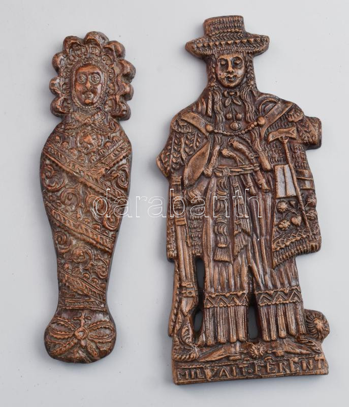 Beschreibung: Parasztmadonna + Milfajt Ferenc, engóbozott kerámia falidíszek, kopással, jelzés nélkül, m: 18,5-20,5 cm