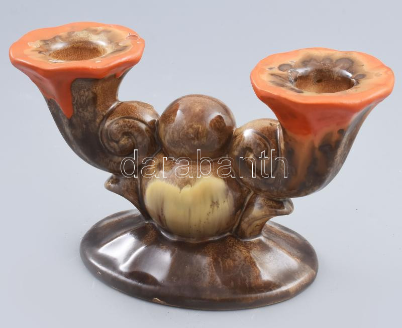 Beschreibung: Strehla Keramik kétágú gyertyatartó, jelzett, kopással, 20x10x11,5 cm