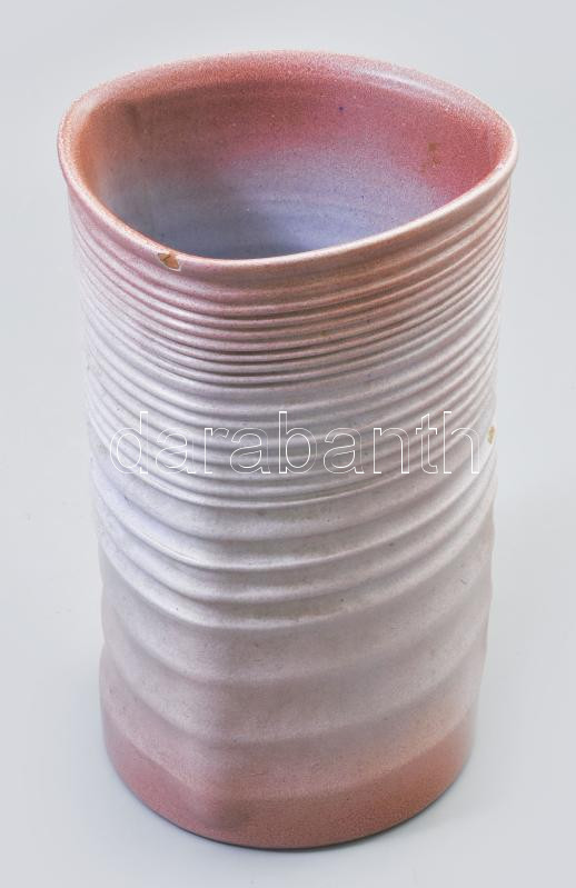 Beschreibung: Tóvölgyi Katalin: Váza. Retró mázas kerámia, jelzett, kis lepattanással m: 25 cm