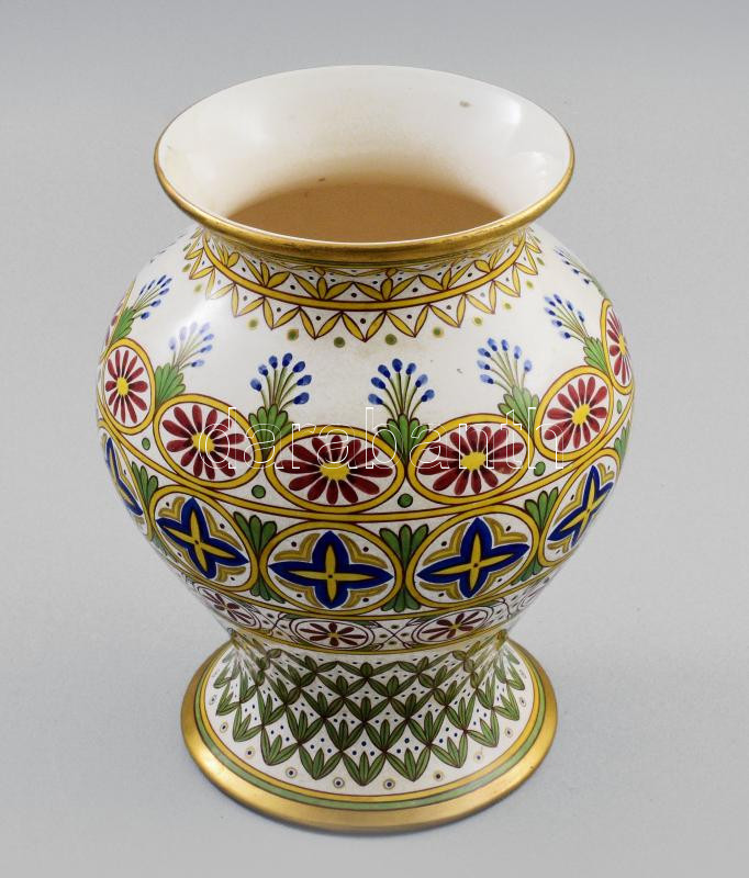 1874 körül, Zsolnay virágmintás díszváza. Festett porcelánfajansz. Szű... https://www.darabanth.com/de/457-Fernauktion/457.0/Porzellan-Keramik-Glass/Porzellan~500008/1874-korul-Zsolnay-viragmintas-diszvaza-Festett-porcelanfajansz-Szukulo-talprol-szele~II3037434