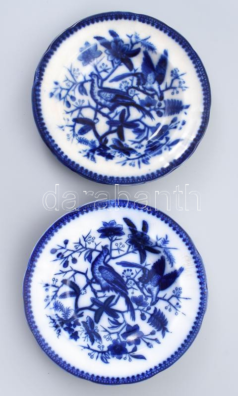 Beschreibung: 2 darab, cca 1850 Villeroy & Boch "Fasan" mintás tál. Máz alatti kékkel festett, jelzés nélkül, mázrepedéssel, egyik tálon kis repedéssel, d: 23,5 cm