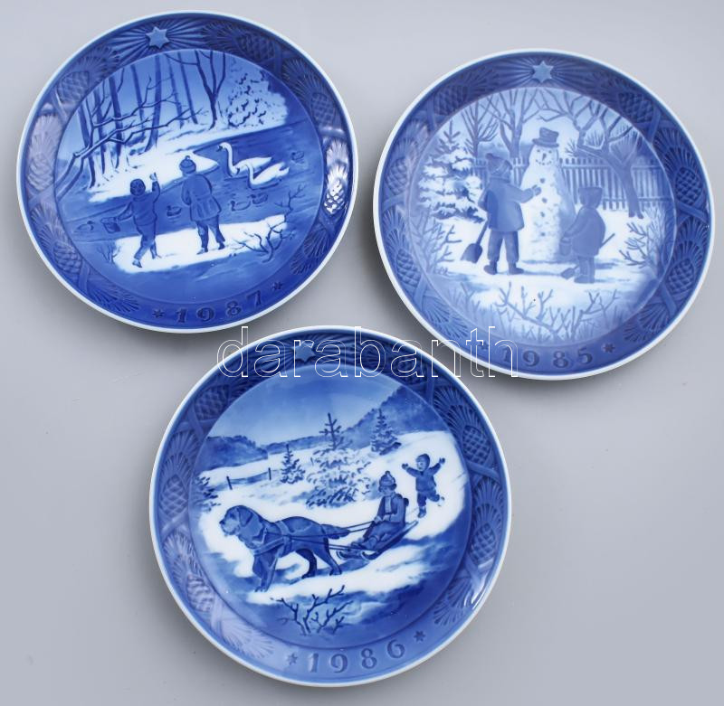 3 darab Royal Copenhagen karácsonyi tányér, 1985-1987, jelzett, hibátl... https://www.darabanth.com/de/457-Fernauktion/457.0/Porzellan-Keramik-Glass/Porzellan~500008/3-darab-Royal-Copenhagen-karacsonyi-tanyer-1985-1987-jelzett-hibatlan-d-18-cm~II3054164