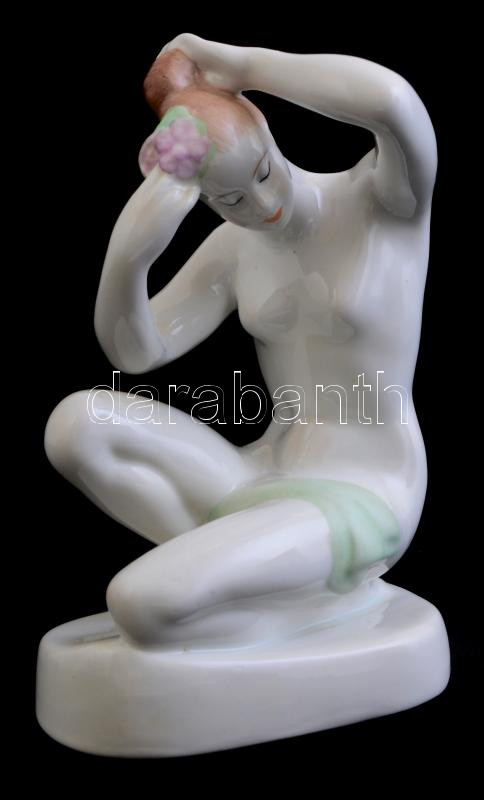 Beschreibung: Aquincumi porcelán fésülködő női akt, kézzel festett, jelzett, hibátlan, m: 15 cm