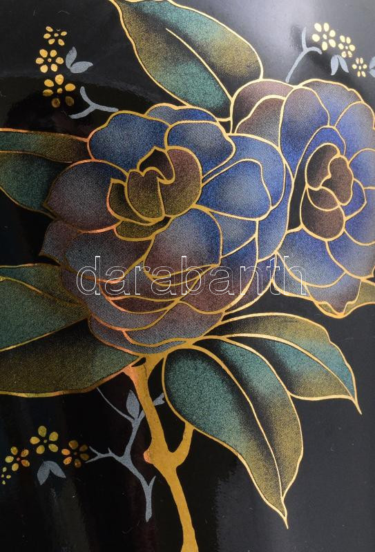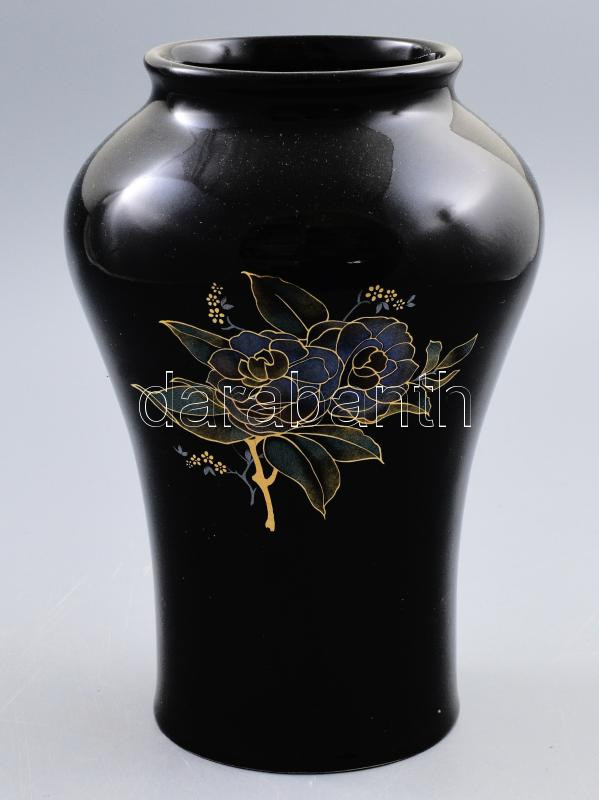 Beschreibung: Fekete, virágos porcelán váza. Kézzel festett, jelzett, hibátlan 23 cm