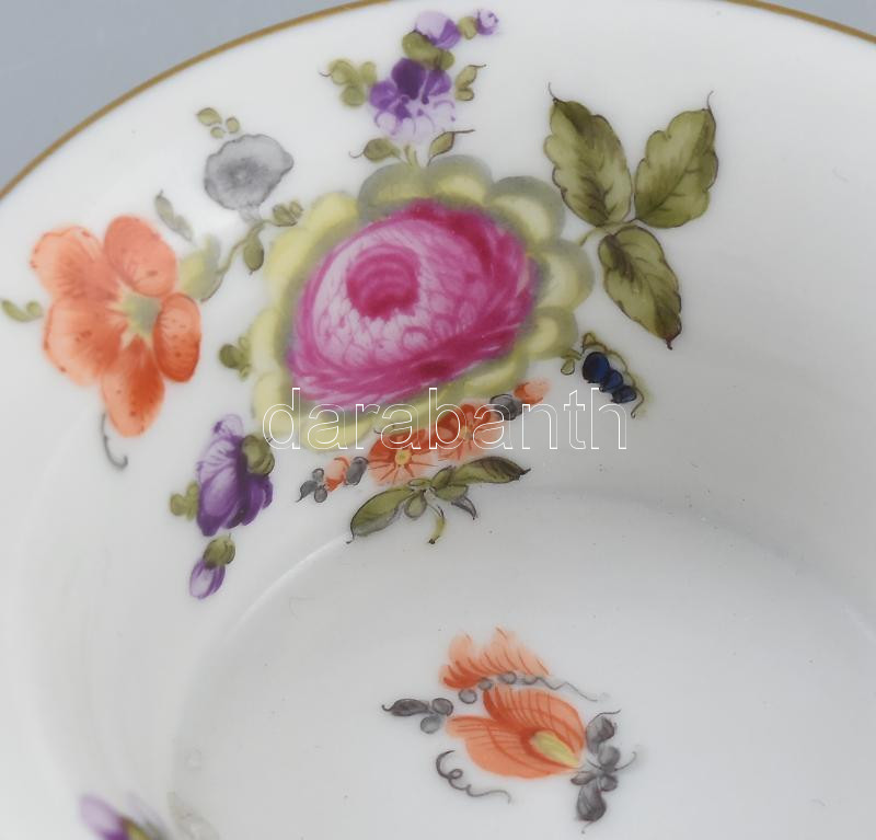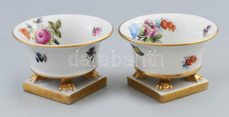 Beschreibung: Herendi virágmintás fűszerkínáló pár, talapzaton álló oroszlánlábas díszítéssel, kézzel festett, jelzett, hibátlan, d: 7,5 cm