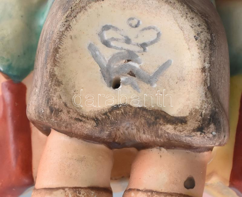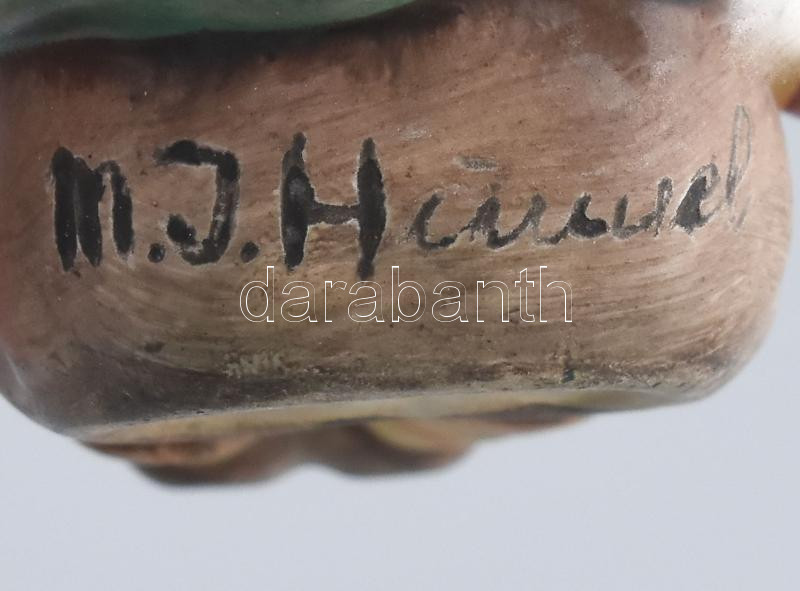 Beschreibung: Hummel harmonikázó kisfiú madárral. Jelzett, kis kopással, m: 8,5 cm
