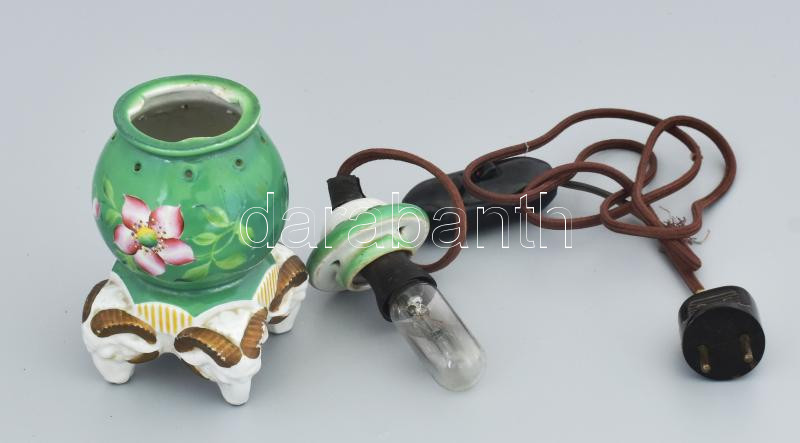 Beschreibung: Kézzel festett porcelán asztali lámpa. Német, régi szövetes vezetékkel, nincs kipróbálva 16 cm