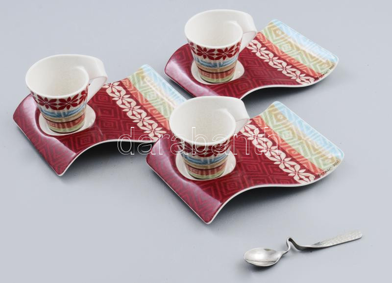 Beschreibung: Villeroy & Boch 3 személyes exkluzív porcelán mokkás készlet, 1 dbhozzá való kanállal. Matricás, jelzett, hibátlan.
