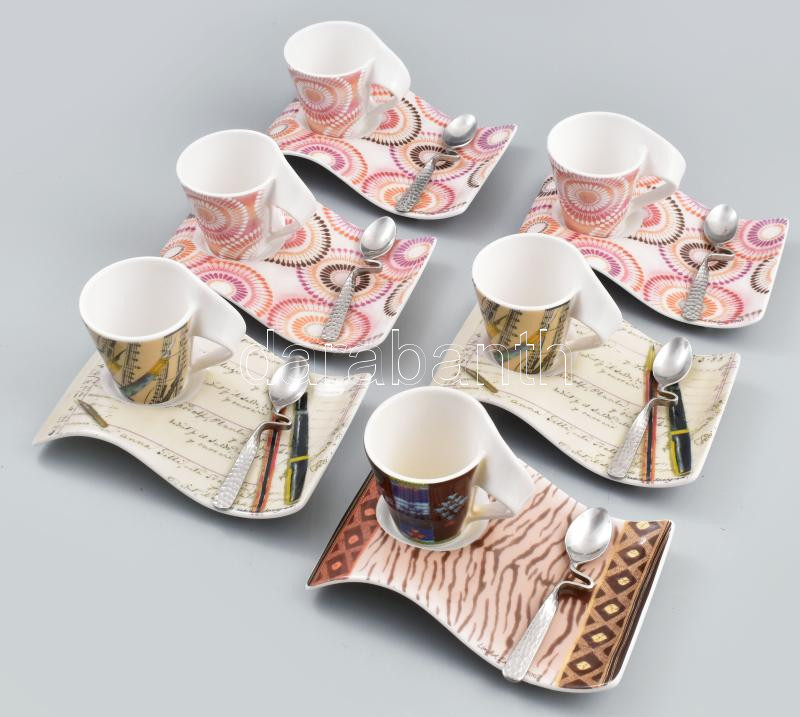 Beschreibung: Villeroy & Boch 6 személyes exkluzív porcelán mokkás készlet, 1 hozzá való kanalakkal. Matricás, jelzett, hibátlan.