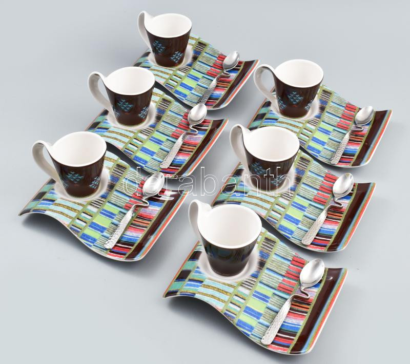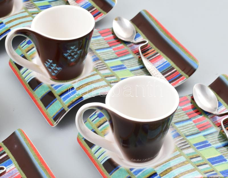 Beschreibung: Villeroy & Boch 6 személyes exkluzív porcelán mokkás készlet, hozzá való kanállal. Matricás, jelzett, hibátlan.