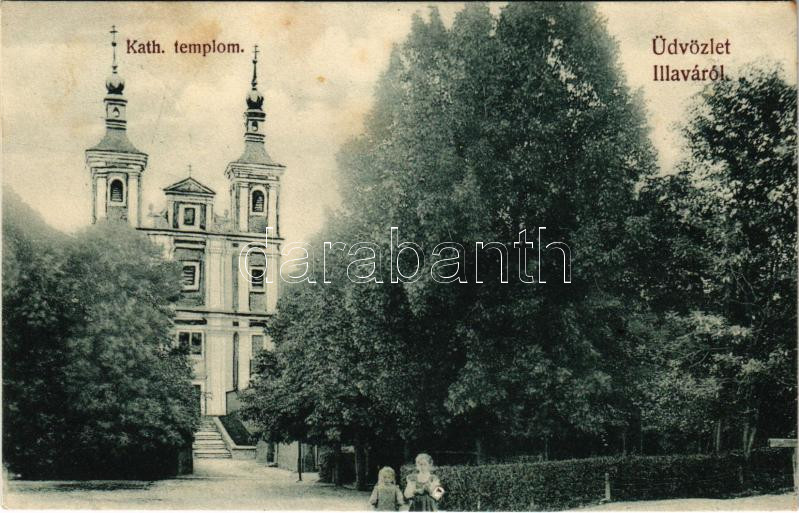 Illava, Illau, Ilava; Katolikus templom / Catholic church https://www.darabanth.com/de/458-Fernauktion/458.0/Ansichtskarten/Slowakei~2000008/Illava-Illau-Ilava-Katolikus-templom-Catholic-church~II3065311