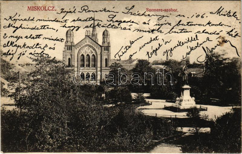 Miskolc, Szemere szobor, zsinagóga. Divald Károly Fia kiadása (gyűrődé... https://www.darabanth.com/de/458-Fernauktion/458.0/Ansichtskarten/Ungarn~2000006/Miskolc-Szemere-szobor-zsinagoga-Divald-Karoly-Fia-kiadasa-gyurodes-crease~II3066194