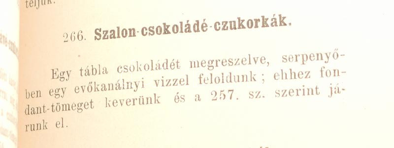 Hegyesi József: A legujabb házi czukrászat kézikönyve. Bp., 1893, szerzői kiadás (Czettel és Deutsch-ny.), 247 p.+ 1 (kihajtható, színes litográfia) t. Negyedik, javitott és bővitett kiadás. Illusztrált egészvászon-kötésben, kopottas, javított borítóval, helyenként kissé foltos lapokkal, néhány sérült, javított lappal