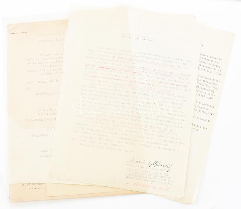 Beschreibung: 1945 Dr. Kövér Gusztáv, a magyar parlament tagjának, a Vöröskereszt genfi megbízottjának háborús igazolásai
