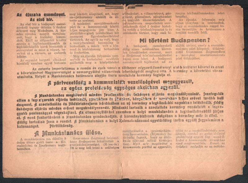 1919 Miskolci napló március 23-i száma a kommün kikiáltásának híreivel https://www.darabanth.com/de/458-Fernauktion/458.0/Kunst-Dokumente-andere-Sammelgebiete/Drucksachen~1500039/1919-Miskolci-naplo-marcius-23-i-szama-a-kommun-kikialtasanak-hireivel~II3066859