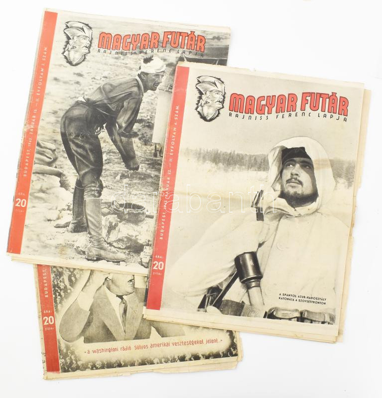 1942 Magyar Futár, Rajniss Ferenc lapja 3 db száma: II. évf. 2., 3., 4... https://www.darabanth.com/de/458-Fernauktion/458.0/Kunst-Dokumente-andere-Sammelgebiete/Drucksachen~1500039/1942-Magyar-Futar-Rajniss-Ferenc-lapja-3-db-szama-II-evf-2-3-4-sz-Valtozo-allapotban-~II3067445