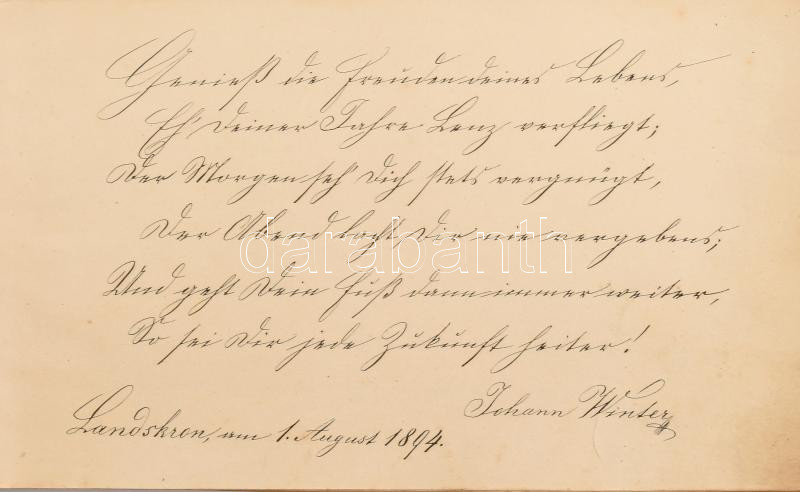 1894-1900 Régi emlékalbum, német nyelvű bejegyzésekkel, litografált il... https://www.darabanth.com/de/458-Fernauktion/458.0/Kunst-Dokumente-andere-Sammelgebiete/Historische-Dokumenten-Handschriften~1000022/1894-1900-Regi-emlekalbum-nemet-nyelvu-bejegyzesekkel-litografalt-illusztraciokkal-Serult~II3068982