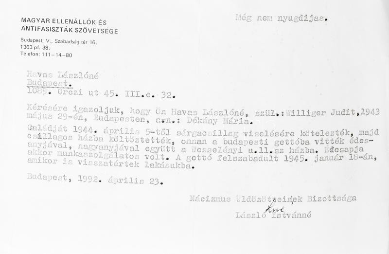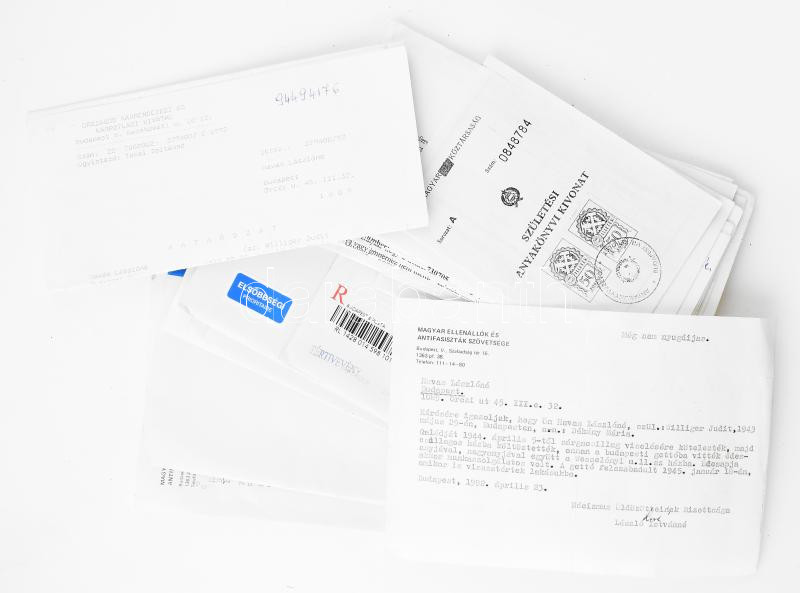1992-2013 1944-ben meghurcolt személy (gettóba zárták) kárpótlási irat... https://www.darabanth.com/de/458-Fernauktion/458.0/Kunst-Dokumente-andere-Sammelgebiete/Judaica~1500004/1992-2013-1944-ben-meghurcolt-szemely-gettoba-zartak-karpotlasi-iratai~II3065837