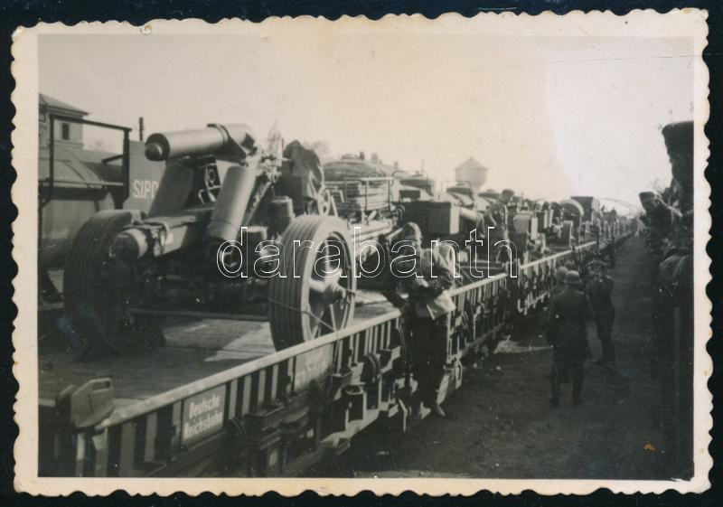 cca 1940 Magyar tüzérségi ágyúk vasúti szállítása, "Deutsche Reichsbah... https://www.darabanth.com/de/458-Fernauktion/458.0/Kunst-Dokumente-andere-Sammelgebiete/Militaria~1500008/cca-1940-Magyar-tuzersegi-agyuk-vasuti-szallitasa-Deutsche-Reichsbahn-feliratu-tehervagonon-~II3066840