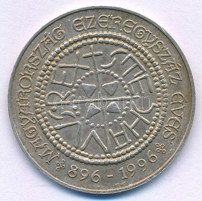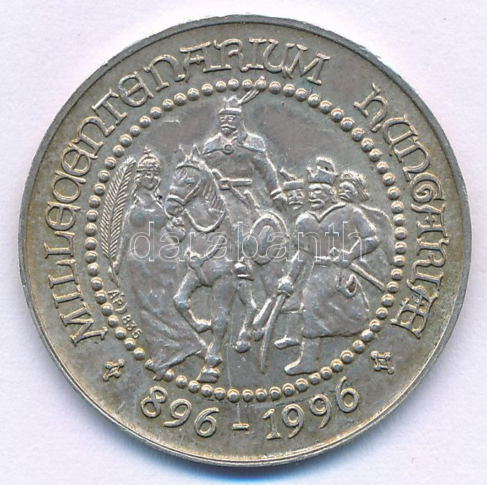 1996. "Millecentenárium - Magyarország ezeregyszáz éves 896-1996" kétoldalas jelzett Ag emlékérem (5,87g/0.835/27mm) T:AU patina