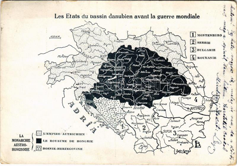 1938 Les Etats du bassin danubien avant la guerre mondiale / Magyarország feldarabolása nemcsak kegyetlen és igazságtalan, hanem szánalmasan oktalan cselekedet volt, amely Közép-Európának létalapját gyökerében tette tönkre. Kiadja a Magyar Nemzeti Szövetség / Hungarian irredenta propaganda, Trianon (EK)