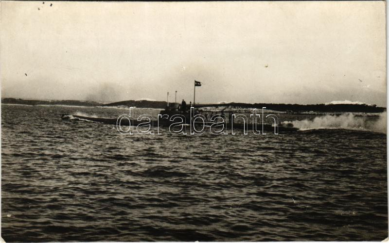 Beschreibung: S.M. U-III osztrák-magyar tengeralattjáró / K.u.k. Kriegsmarine Unterseeboot III / Austro-Hungarian Navy submarine "U 3". photo (ragasztónyom / gluemark)