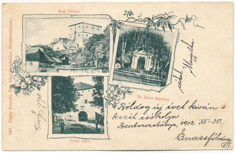 1902 Besztercebánya, Banská Bystrica; Régi bástya, Sz. János kápolna, Ezüst kapu. Ivánszky Elek 7007. / old bastion tower, chapel, gate. Art Nouveau, floral (EK) + "ZÓLYOM-BRÉZÓ-ZÓLYOM 98. SZ." vasúti mozgóposta