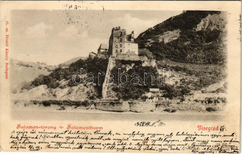 1899 (Vorläufer) Visegrád, Salamon torony, gőzhajó. Divald Károly 21. ... https://www.darabanth.com/de/459-Fernauktion/459.0/Ansichtskarten/Ungarn~1500005/1899-Vorlaufer-Visegrad-Salamon-torony-gozhajo-Divald-Karoly-21-sz-EK~II3070683