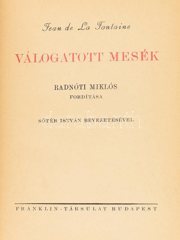Radnóti Miklós (ford.): Jean de La Fontaine. Válogatott mesék. Fables choisies. ~ fordítása Sőtér István bevezetésével