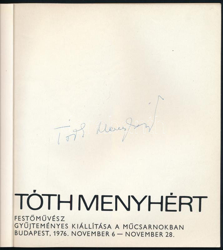 Aszalós Endre (szerk.): Tóth Menyhért festőművész gyűjteményes kiállítása a Műcsarnokban. A festőművész, Tóth Menyhért (1904 - 1980) által ALÁÍRT példány.