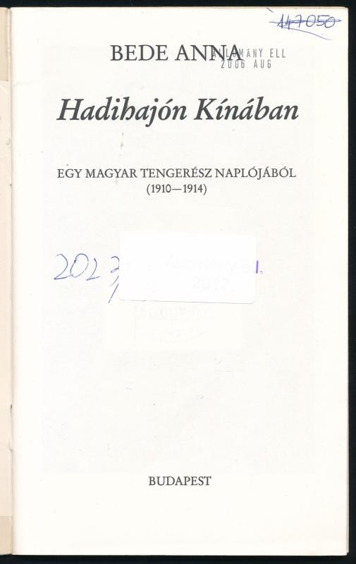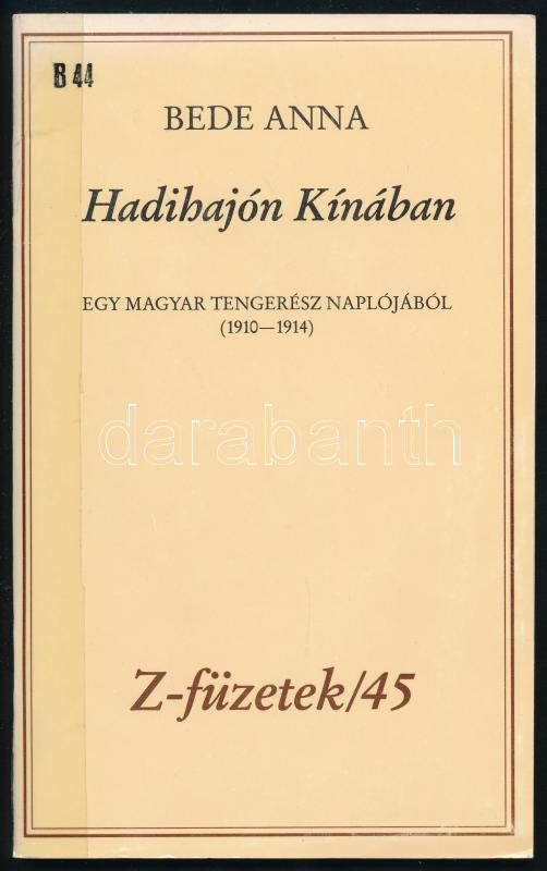 Bede Anna: Hadihajón Kínában. Egy magyar tengerész naplójából (1910-19... https://www.darabanth.com/de/459-Fernauktion/459.0/Bucher/Bucher-Militaria~2000021/Bede-Anna-Hadihajon-Kinaban-Egy-magyar-tengeresz-naplojabol-1910-1914-Z-fuzetek45-Bp-~II3073551