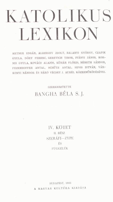 Katolikus Lexikon 1-4. köt. Szerk.: Bangha Béla. Bp., 1931-1933, Magyar Kultúra. Korabeli félbőr-kötések, kopott borítókkal, a 3/1. kötet és a 4/2. kötet gerince hiányzik, a 2./1.