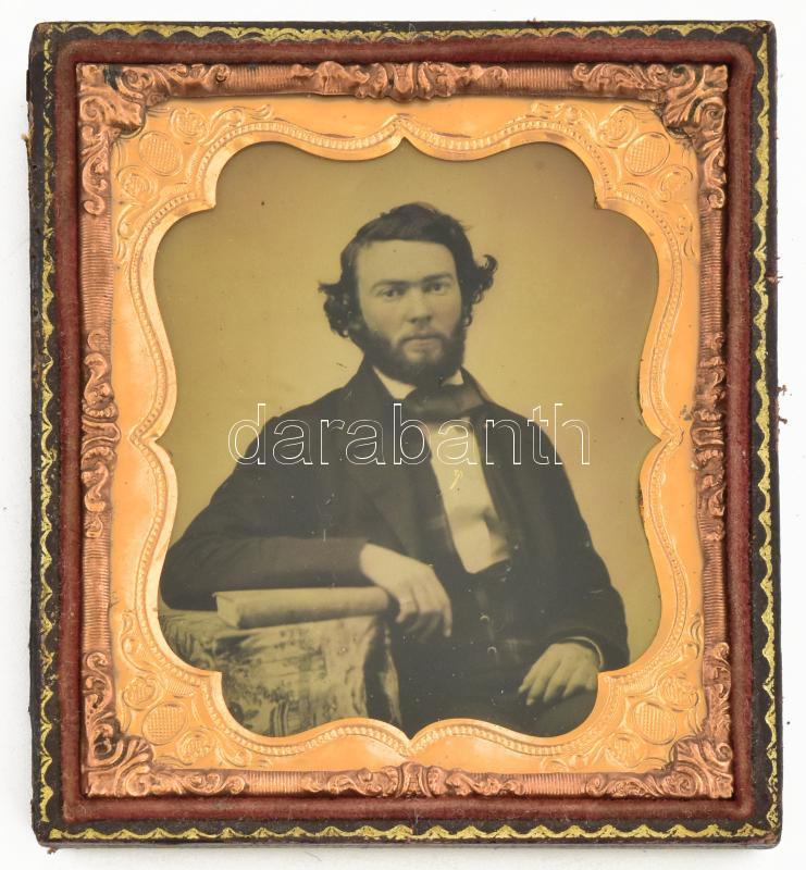 cca 1850 Elegáns férfi, dagerrotípia, dekoratív tokban, a tok fedele h... https://www.darabanth.com/de/459-Fernauktion/459.0/Fotografie/Foto~1000023/cca-1850-Elegans-ferfi-dagerrotipia-dekorativ-tokban-a-tok-fedele-hianyzik-9x8-cm~II3076235