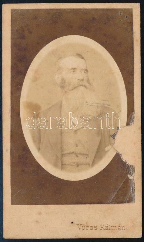 cca 1870 Brandstätter Bertalan rakamazi malomtulajdonos, vizitkártya Vörös Kálmán és Béla pesti műterméből, a hátoldalon feliratozva, sérült, kissé foltos, 10,5x6 cm