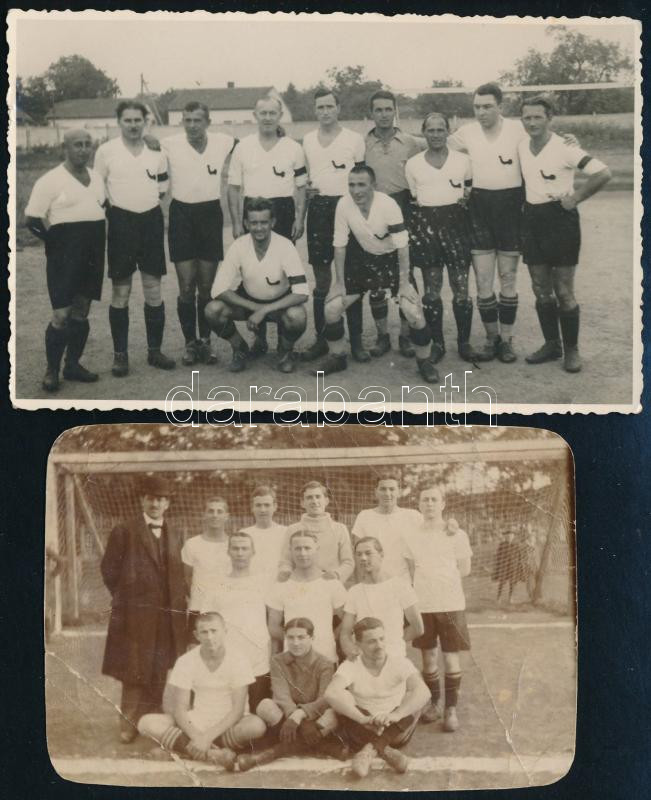 Beschreibung: cca 1920-1940 Aradi futballcsapatok, 2 db fotó, egyik felületén törésnyomok, 7,5×11,5 és 17,5×8,5 cm