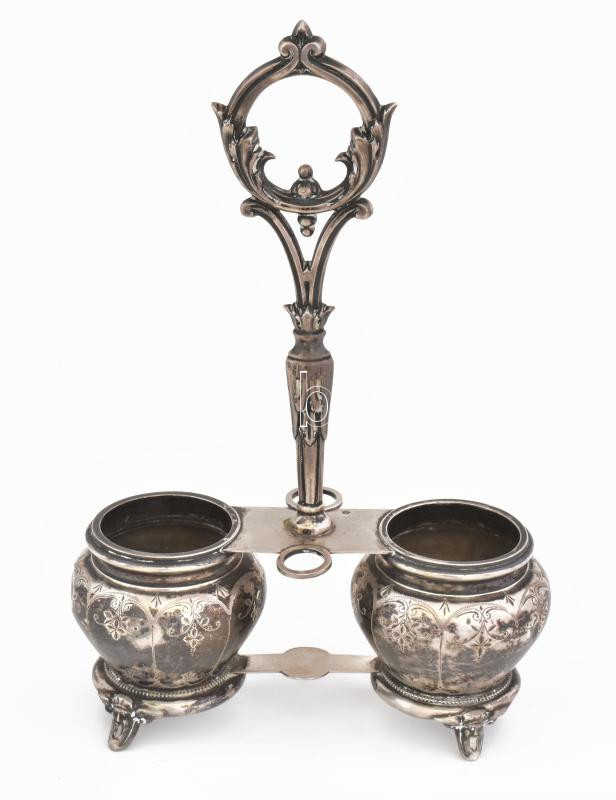 Ezüst (Ag) asztali ecet és olajos üveg tartó, szervírozó. Dianás jelzé... https://www.darabanth.com/de/459-Fernauktion/459.0/Juwellen-und-Kunstobjekte-aus-Edelmetall/Juwellen-und-Kunstobjekte-aus-Edelmetall~2000016/Ezust-Ag-asztali-ecet-es-olajos-uveg-tarto-szervirozo-Dianas-jelzessel-mesterjeggyel-214g~II3070404