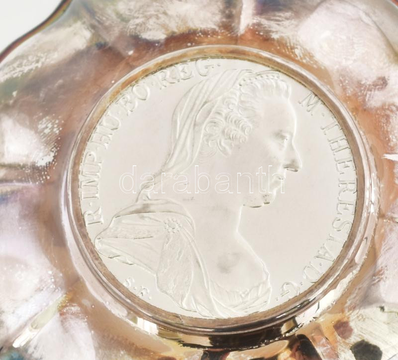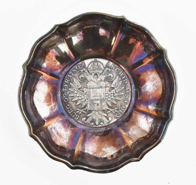 Beschreibung: Ezüst(Ag) Otto Feiler tál, aljában Ausztria 1780SF Tallér Ag "Mária Terézia" utánveret, jelzett, d: 9 cm, nettó: 73,6 g