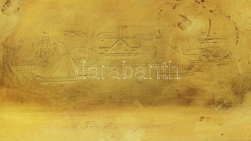 1891 Balatonfüredi emlék. Réz tál, parti életképpel vitorlás hajókkal ... https://www.darabanth.com/de/459-Fernauktion/459.0/Kunst-Dokumente-andere-Sammelgebiete/Antik~1000008/1891-Balatonfuredi-emlek-Rez-tal-parti-eletkeppel-vitorlas-hajokkal-es-felirattal-vesett-23x14-cm~II3070269