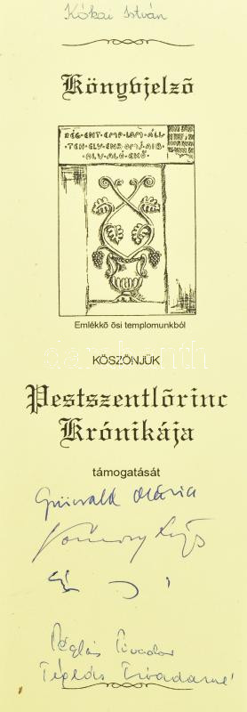 Pestszentlőrinc krónikája. Múltunkról a mának. Szerk.: Dr. Téglás Tivadar. Bp., 1996, Pestszentlőrinc- Pestszentimre Önkormányzata Közművelődési és Sport Alapítványa. Kiadói papírkötés. A könyvhöz járó könyvjelzővel, rajta a kötet szerkesztőjének és szerzőinek (Dr. Téglás Tivadar, Dr. Téglás Tivadarné, Grünvald Mária, Tomory Lajos, Szász János) aláírásaival.