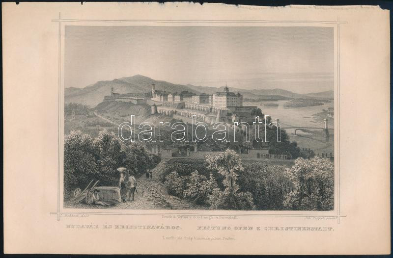 cca 1860 Budavár ls Krisztinaváros (látképe) Ludwig Rohbock (1820-1883)-Joh Poppel., Pest, Lauffer és Stolp, acélmetszet, jelzett a dúcon, 13x18 cm, teljes: 16x24 cm