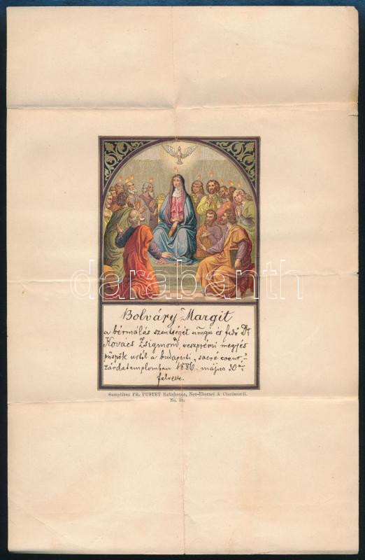 1886 Bp., Bolváry Margit bérmálási emléklapja, hajtva, lapszéli szakad... https://www.darabanth.com/de/459-Fernauktion/459.0/Kunst-Dokumente-andere-Sammelgebiete/Dokument~1000020/1886-Bp-Bolvary-Margit-bermalasi-emleklapja-hajtva-lapszeli-szakadassal-26-5x17-cm~II3073293
