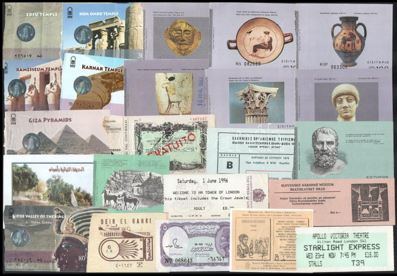 Beschreibung: Külföldi múzeumi, színházi és egyéb belépőjegyek (Gízai piramisok, Ermitázs, stb.), össz. 36 db