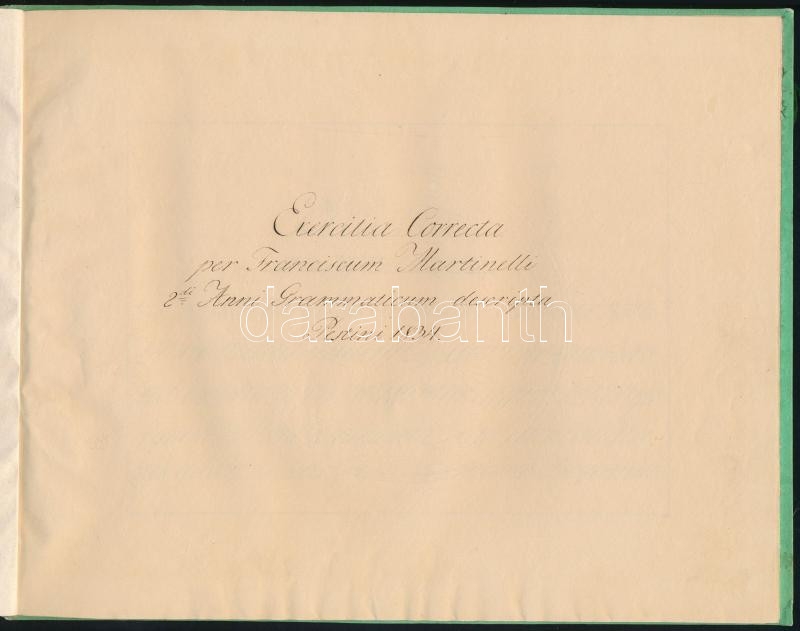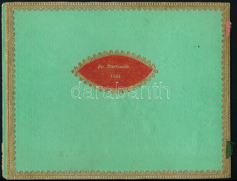 1834 Fr. Martinelli javító gyakorlatok II. osztály számára. Írás tanítási füzet nagyon dekoratív korabeli nyomott mintás, aranyozott vászonkötésben 22 p. Szép állapotban