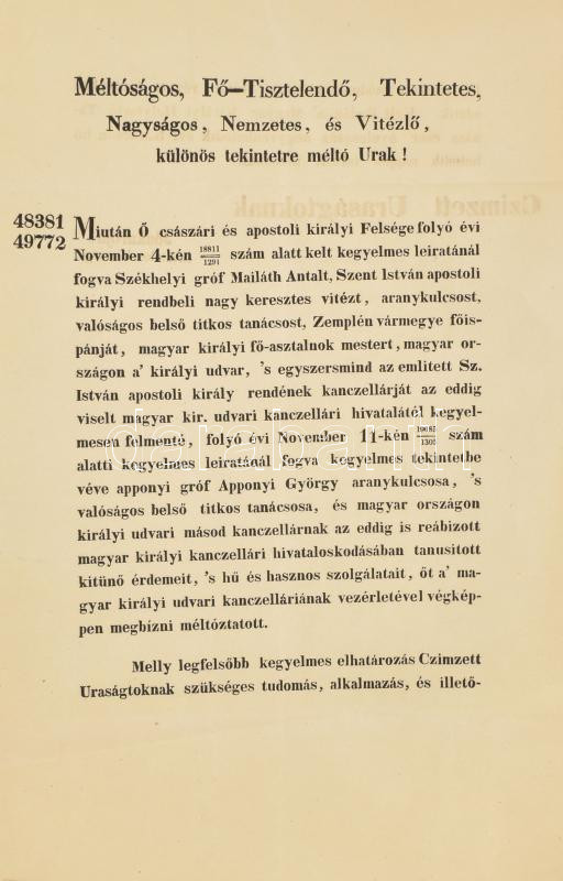1847 Buda, a Magyar Királyi Helytartótanács körlevele, gróf Mailáth An... https://www.darabanth.com/de/459-Fernauktion/459.0/Kunst-Dokumente-andere-Sammelgebiete/Drucksachen~2000036/1847-Buda-a-Magyar-Kiralyi-Helytartotanacs-korlevele-grof-Mailath-Antal-fokancellari-tisztsegbol~II3074960