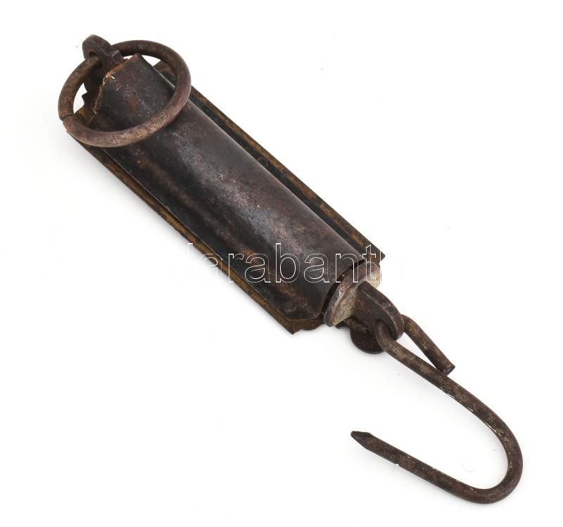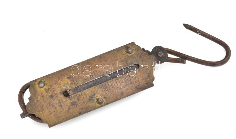 Pocket Balance akasztós, rugós mérleg, réz előlappal, korának megfelel... https://www.darabanth.com/de/459-Fernauktion/459.0/Kunst-Dokumente-andere-Sammelgebiete/Flohmarkt~1000014/Pocket-Balance-akasztos-rugos-merleg-rez-elolappal-koranak-megfelelo-allapotban-h-18-cm~II3069873