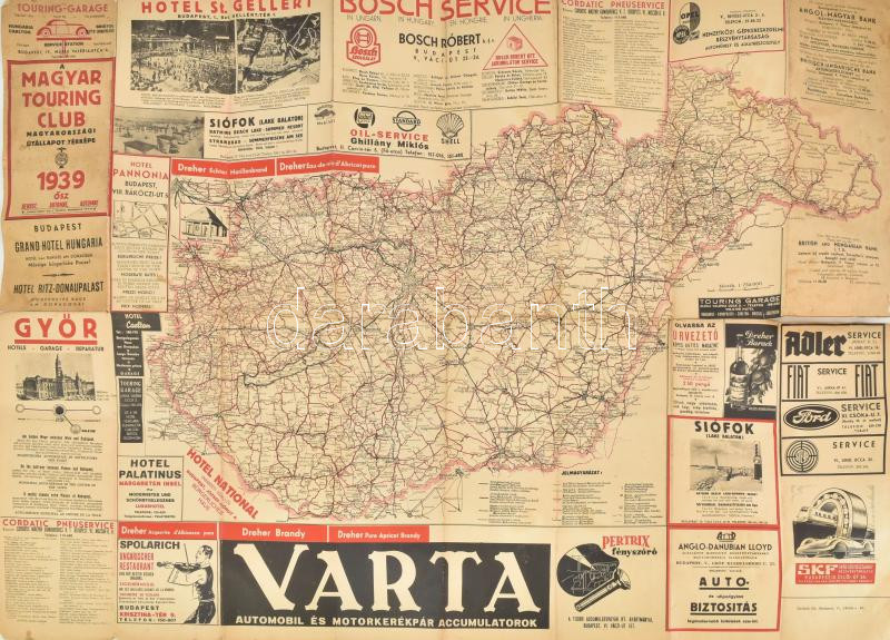 1939 A Magyar Touring Club magyarországi útállapot térképe, reklámokka... https://www.darabanth.com/de/459-Fernauktion/459.0/Kunst-Dokumente-andere-Sammelgebiete/Landkarten~2000010/1939-A-Magyar-Touring-Club-magyarorszagi-utallapot-terkepe-reklamokkal-hatoldalan-korabeli~II3075314