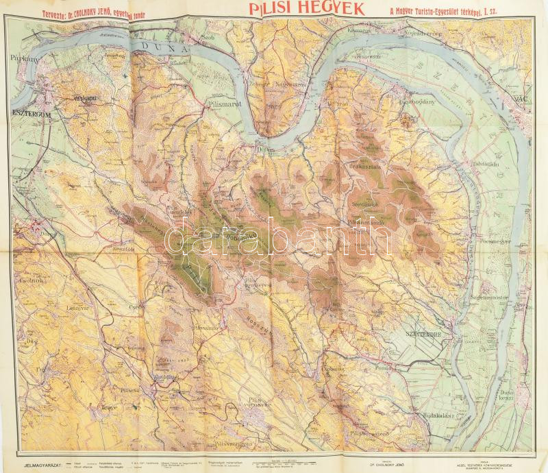 cca 1930 A Pilisi hegyek turistatérképe. A Magyar Turista-Egyesület térképei I. sz. Terv.: Dr. Cholnoky Jenő. 1 : 40.000. Bp., Aczél, apró szakadással, foltos, hajtott, 82x70 cm