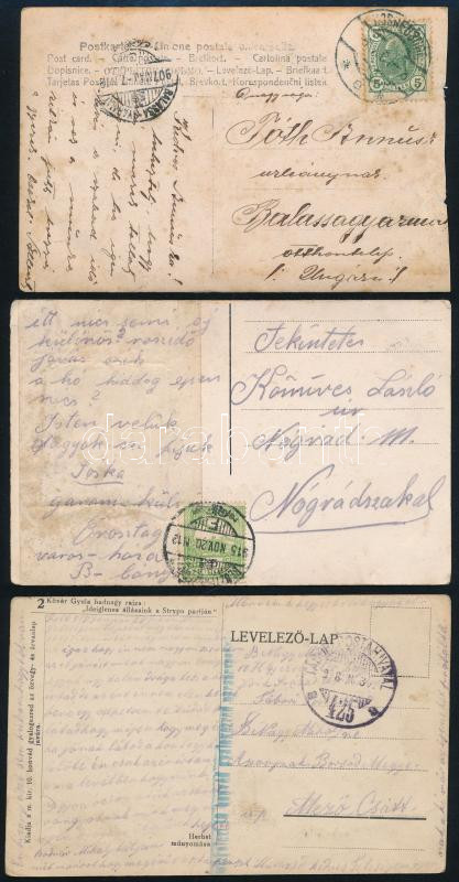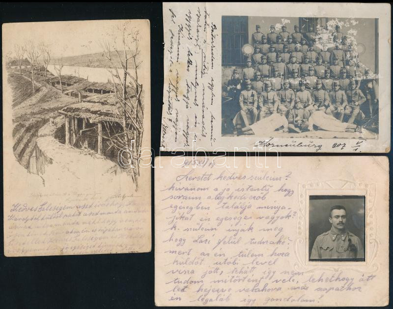 Beschreibung: 1907-1918 3 db megírt katonai levelezőlap, közte cs. és kir. vasúti- és távirdaezred csoportkép, valamint miskolci 10. honvéd gyalogezred levelezőlap