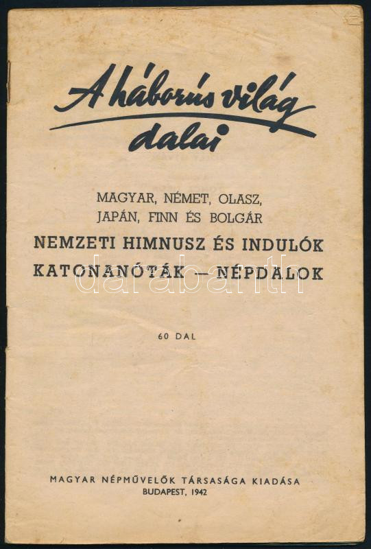 1942 Bp., A háborús világ dalai; magyar, német, olasz, japán, finn és ... https://www.darabanth.com/de/459-Fernauktion/459.0/Kunst-Dokumente-andere-Sammelgebiete/Militaria~2000009/1942-Bp-A-haborus-vilag-dalai-magyar-nemet-olasz-japan-finn-es-bolgar-nemzeti-himnusz-es~II3071548