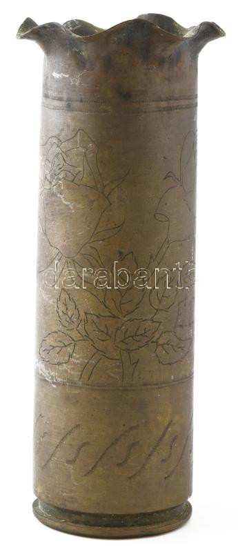 1944 Harctéri emlék töltényhüvelyből készült díszváza vésésekkel, mono... https://www.darabanth.com/de/459-Fernauktion/459.0/Kunst-Dokumente-andere-Sammelgebiete/Militaria~2000009/1944-Harcteri-emlek-toltenyhuvelybol-keszult-diszvaza-vesesekkel-monogrammal-16-cm~II2994465